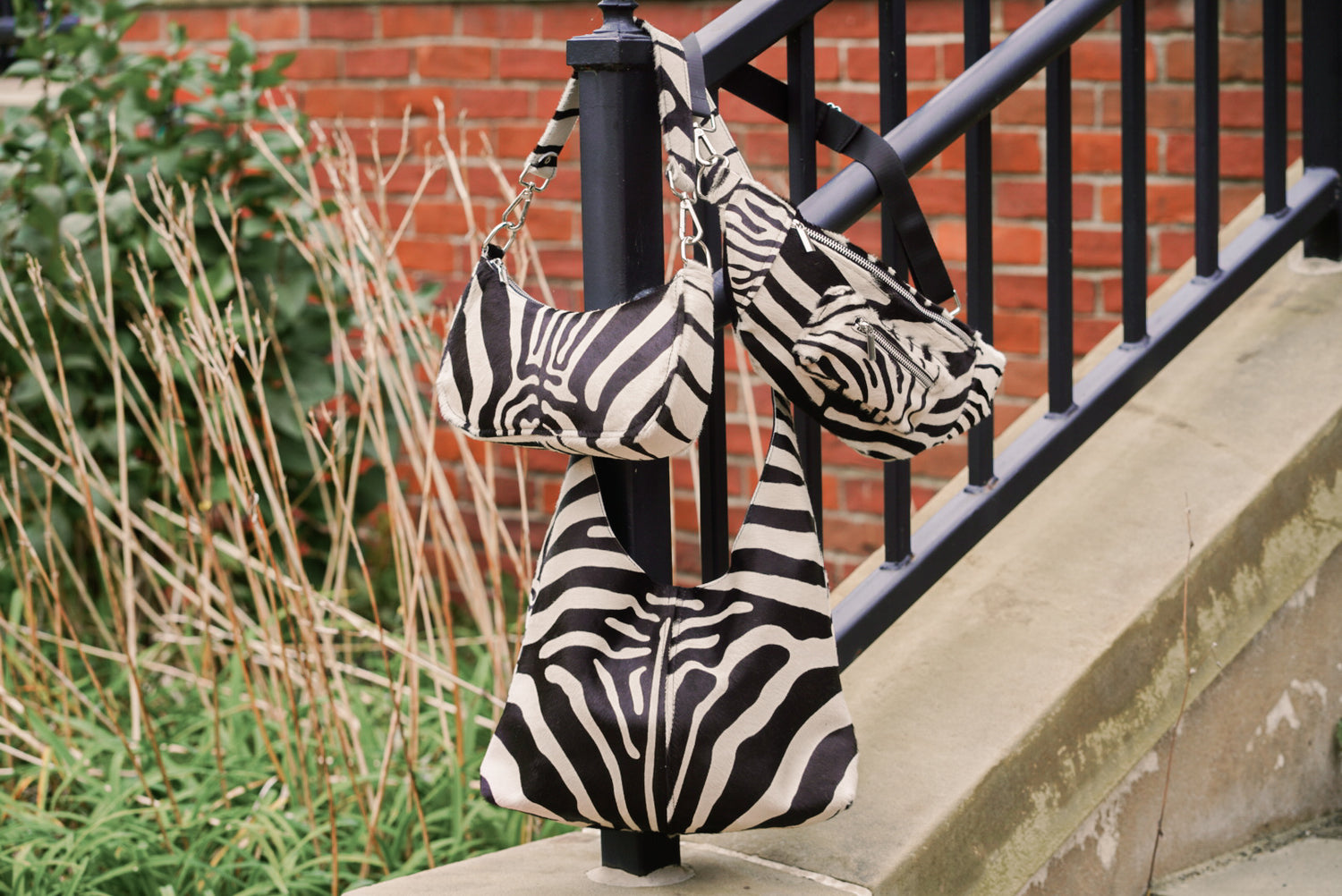 Shop the WILD collection made from genuine hair on lambskin leather in a zebra print pattern. Available in MINI PEGGY, NICOLE & STELLA.