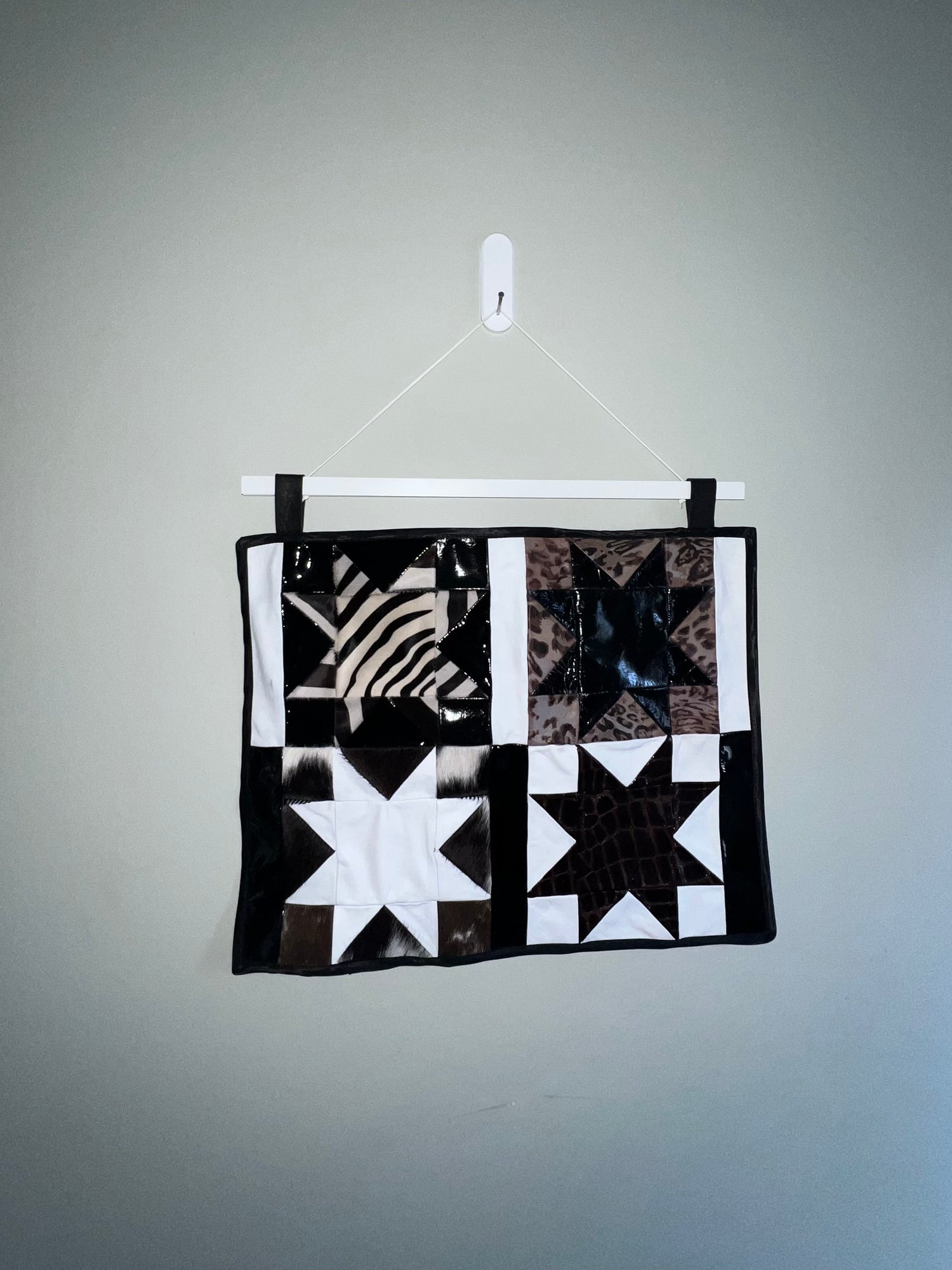 A limited run of 1/1 quilted leather tapestries made from reclaimed leather—scraps, samples, and discontinued hides.