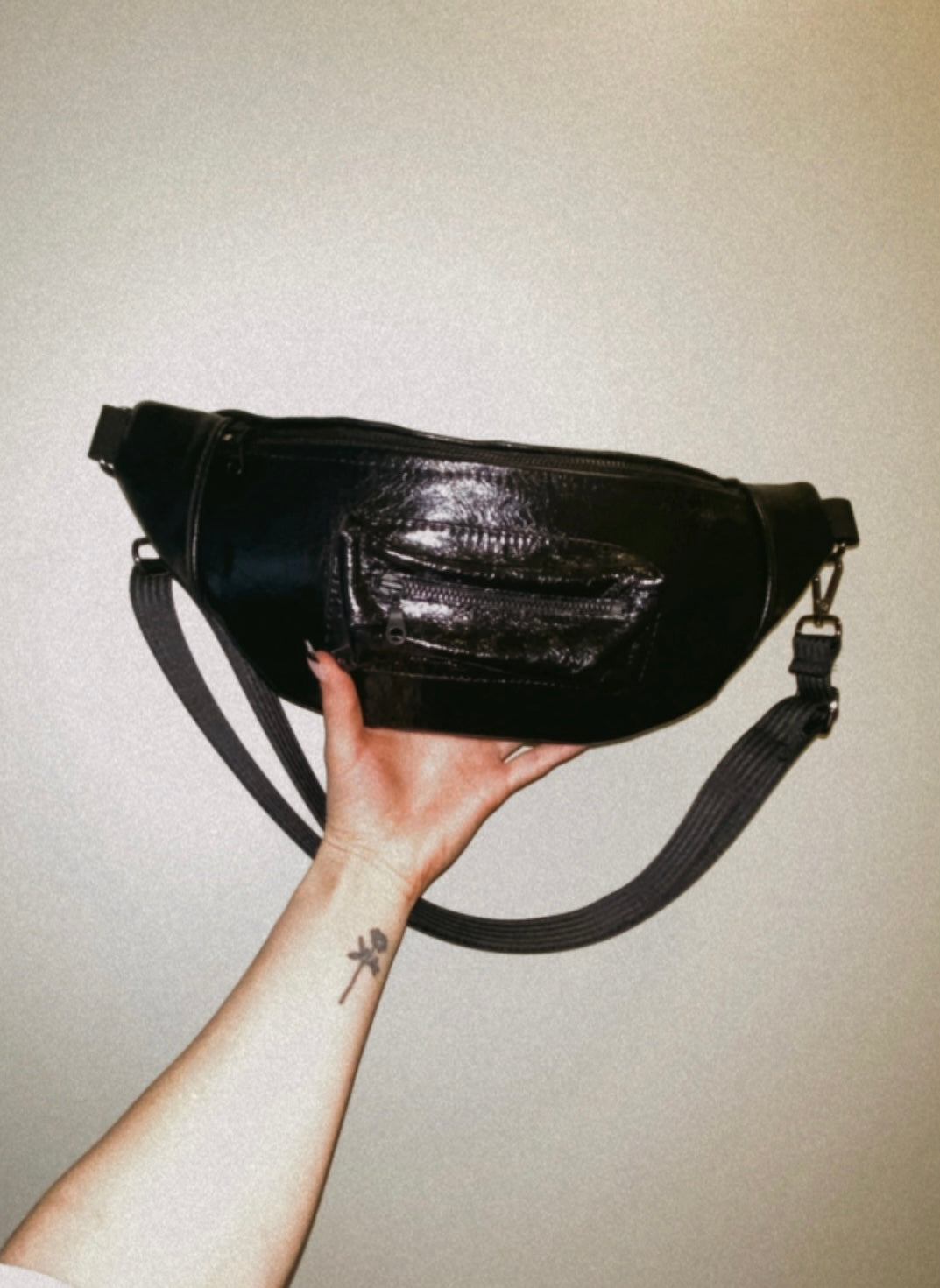 The BLACKOUT collection is made of black patent leather lambskin. This leather is durable and shiny. Adorned in gunmetal hardware this bag is perfect for total darkness.