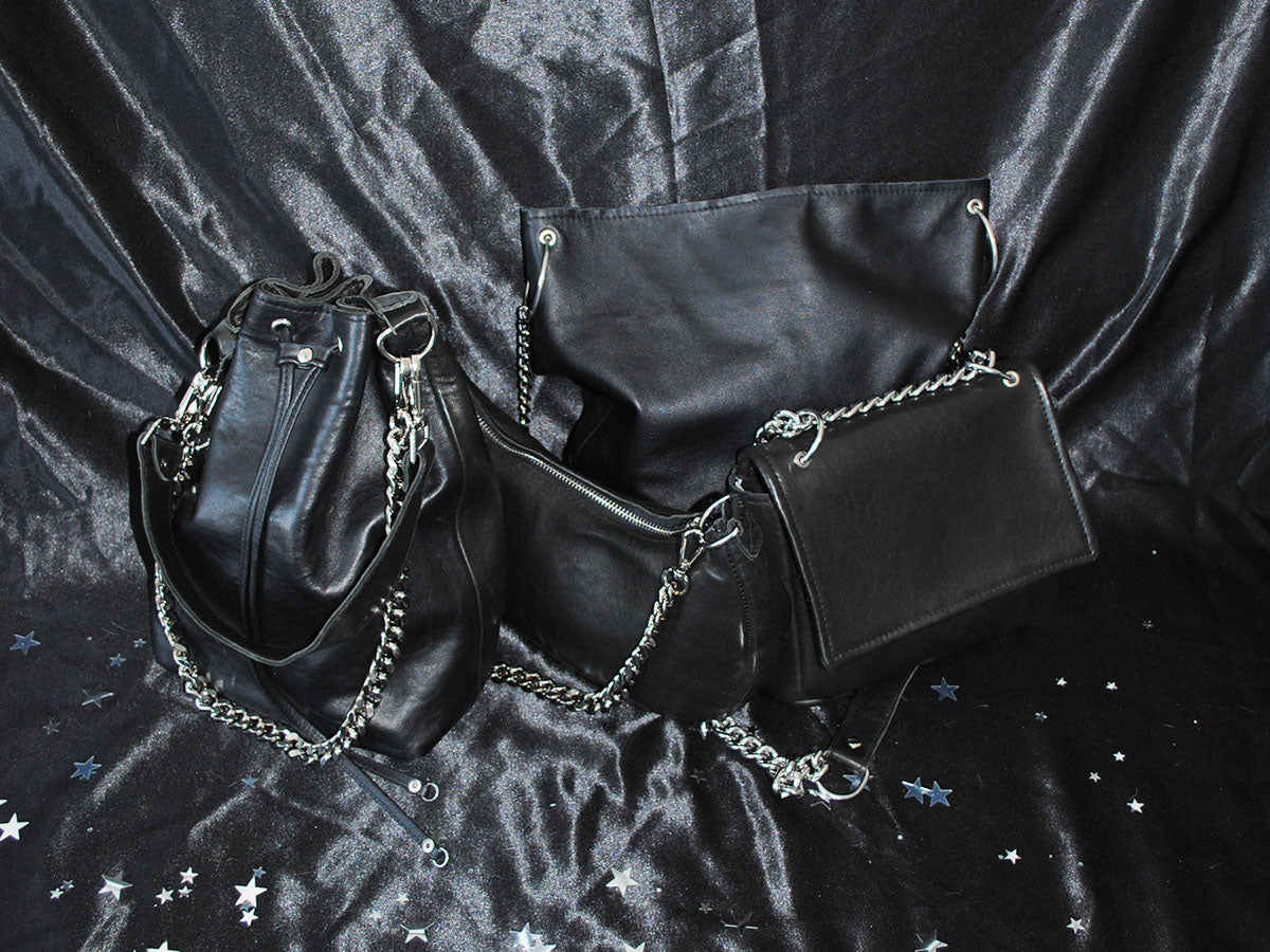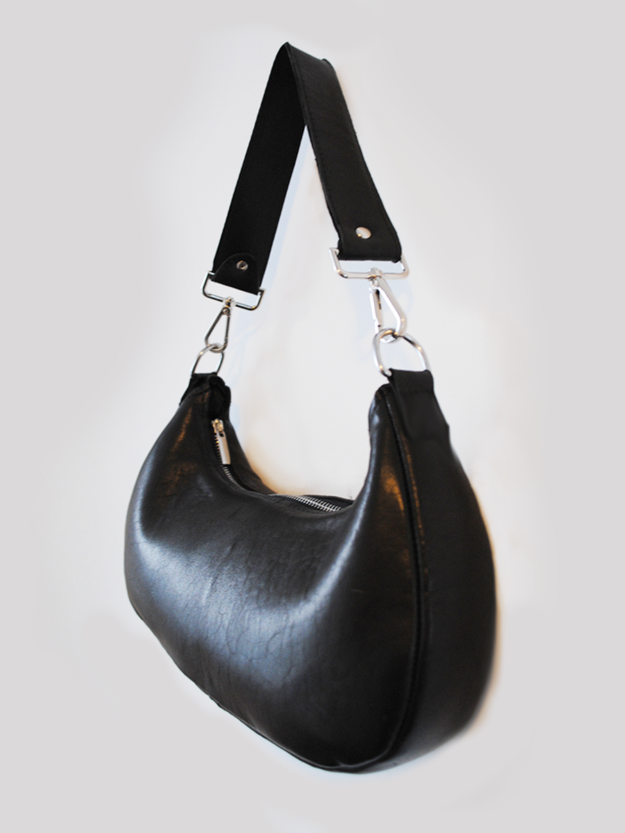 The MIDNIGHT collection is made of pitch-black lambskin. It is soft to the touch but holds its shape in any style. Each bag is lined with a cotton bandana pattern lining and has silver colored metal hardware details. Inspired by the magic of midnight, each bag in this collection is made to transition with you from one day to the next. Break curfew, make last call and head to the after party.